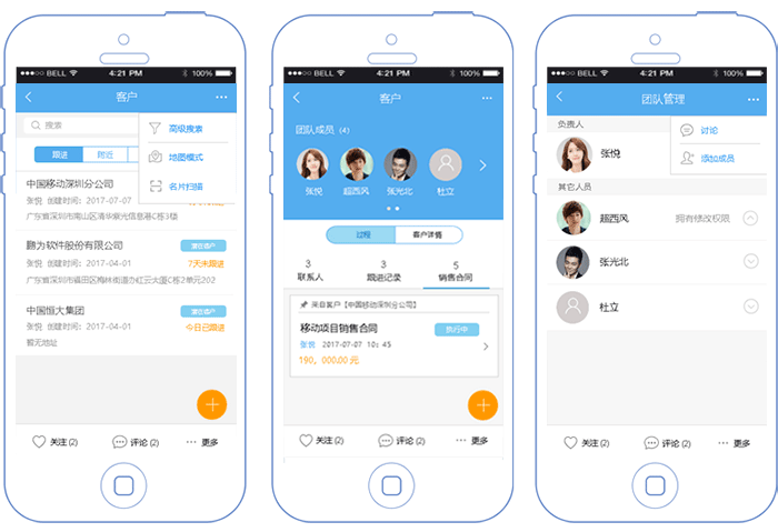 可根据指定客户、项目、订单、合同等进行多人协作