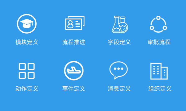 支持满足界面 / 模块 / 字段 / 流程 / 事件 / 动作 / 提醒定义
