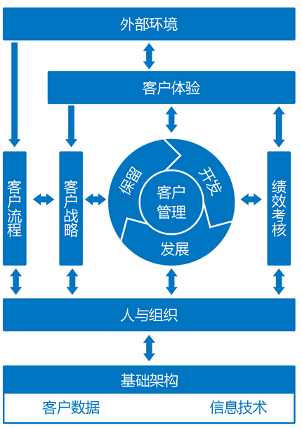 CMME的一级指标为:客户战略、客户流程、人与组织、信息技术、客户数据、客户管理、客户体验和客户绩效。如图示: